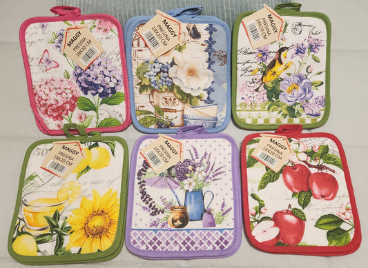 PPRESINE MAGGY Stampate. Misure: Presina 18x20cmComposizione: tessuto esterno 100% cotone - imbottitura 100% poliestereVarinati: assortite (vedi scheda) ...