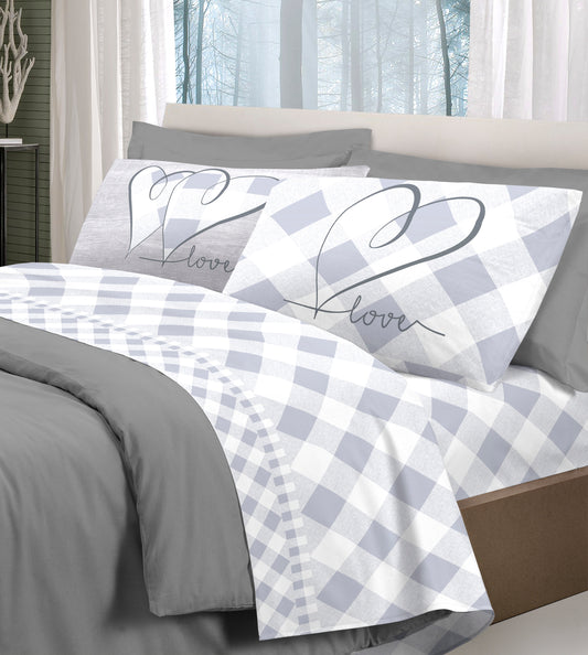Delicate Thoughts Bettwäscheset LOVELY CHECK GRAU Sonderausgabe – Savoltex Produkt aus reiner Qualitätsbaumwolle hergestellt in Italien....